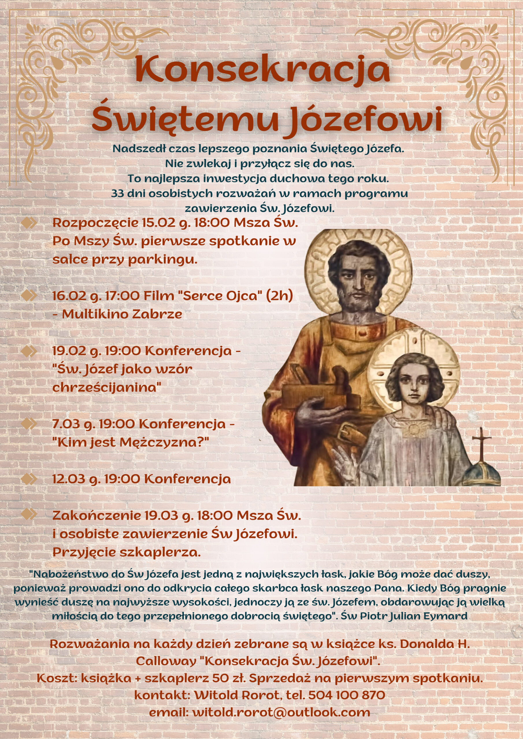 Parafia Św Józefa w Zabrzu organizuje „Konsekrację Św Józefowi”.